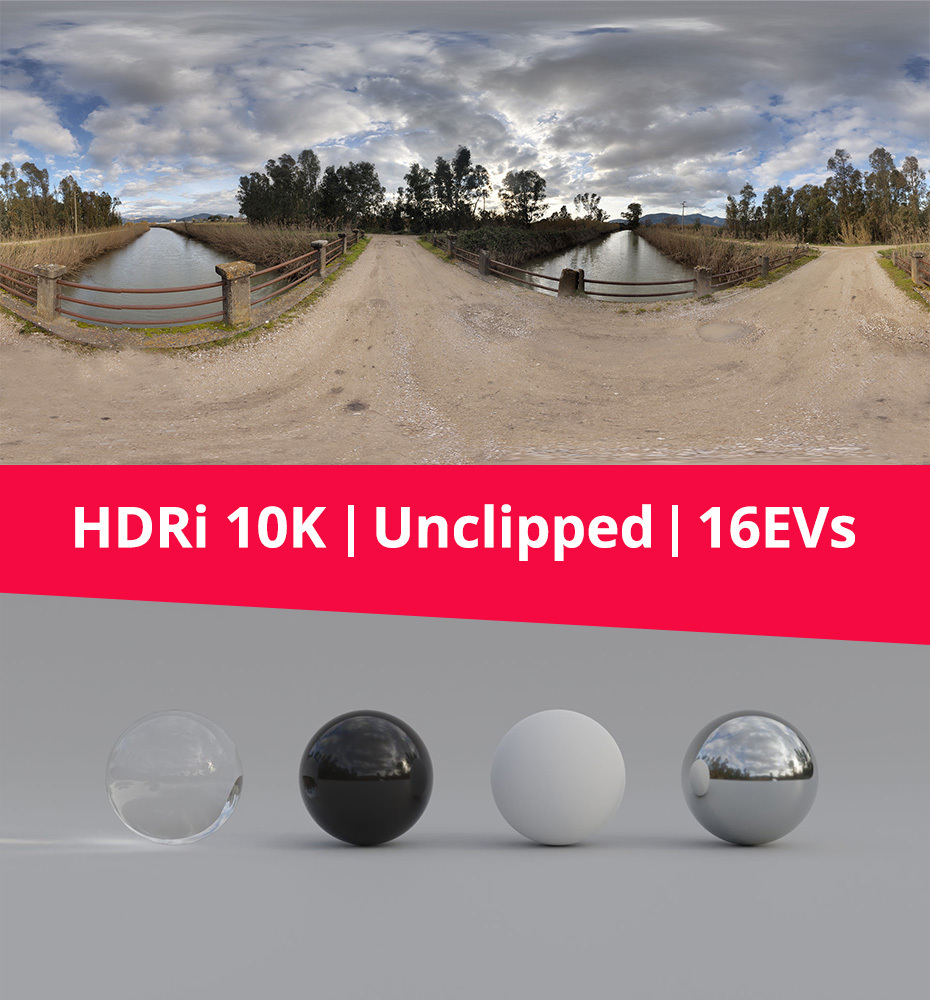 This HDRi is used as image-based lighting in your renderings. It has a dynamic range of 16 EVs.